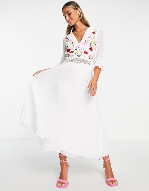 ASOS DESIGN lace insert pleated midi dress with embroidery in white Very well made.