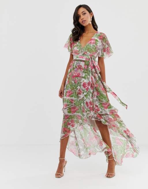 ASOS DESIGN maxi dress with cape back and dipped hem in art Very well made.