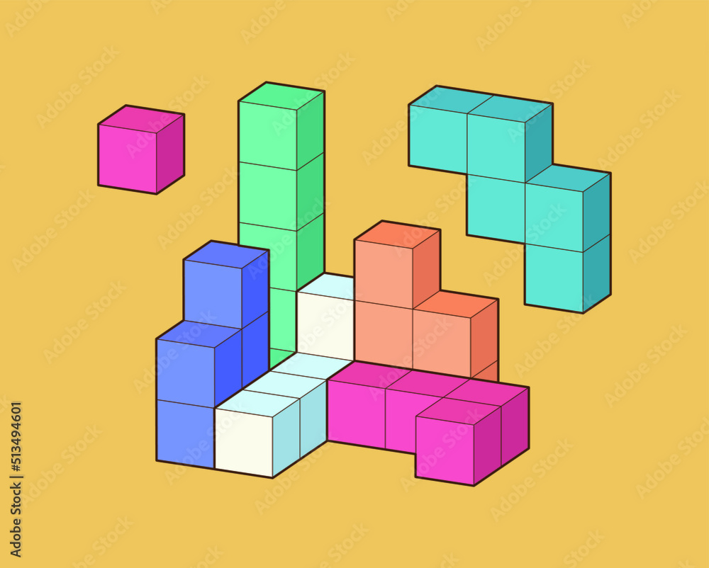 Crystal cube. 3D building block set. Isometric blocks. Abstract Very well made.