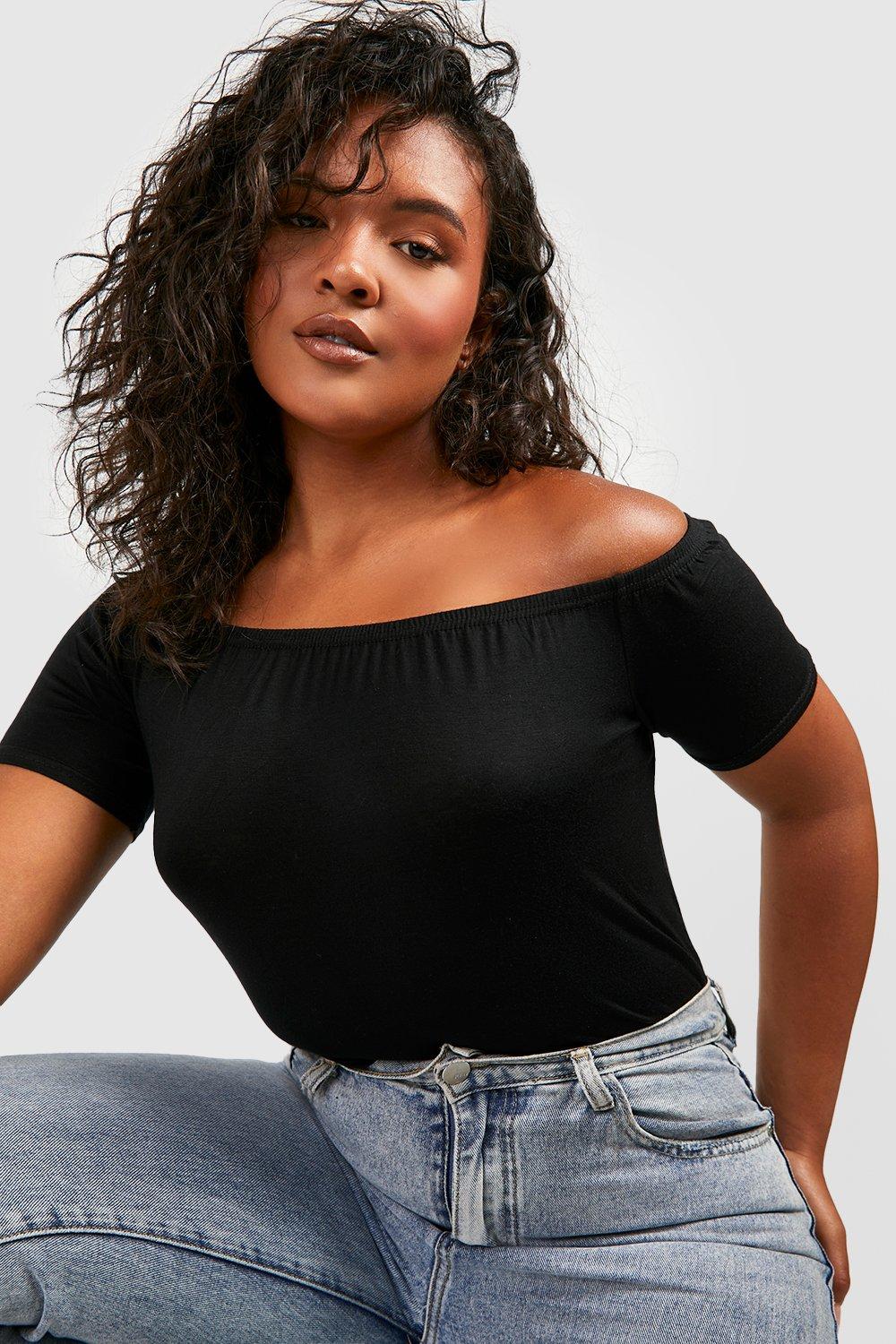 Black Plus Basic Off Shoulder Short Sleeve Crop Top Very well made.