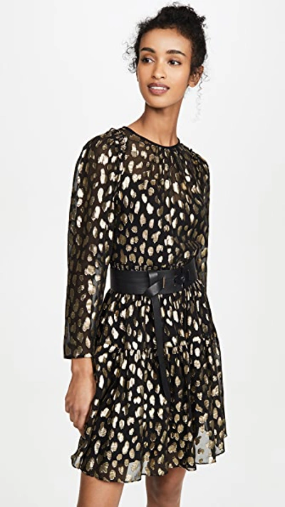 Rebecca Taylor Long Sleeve Leopard Metallic Dress Very well made.