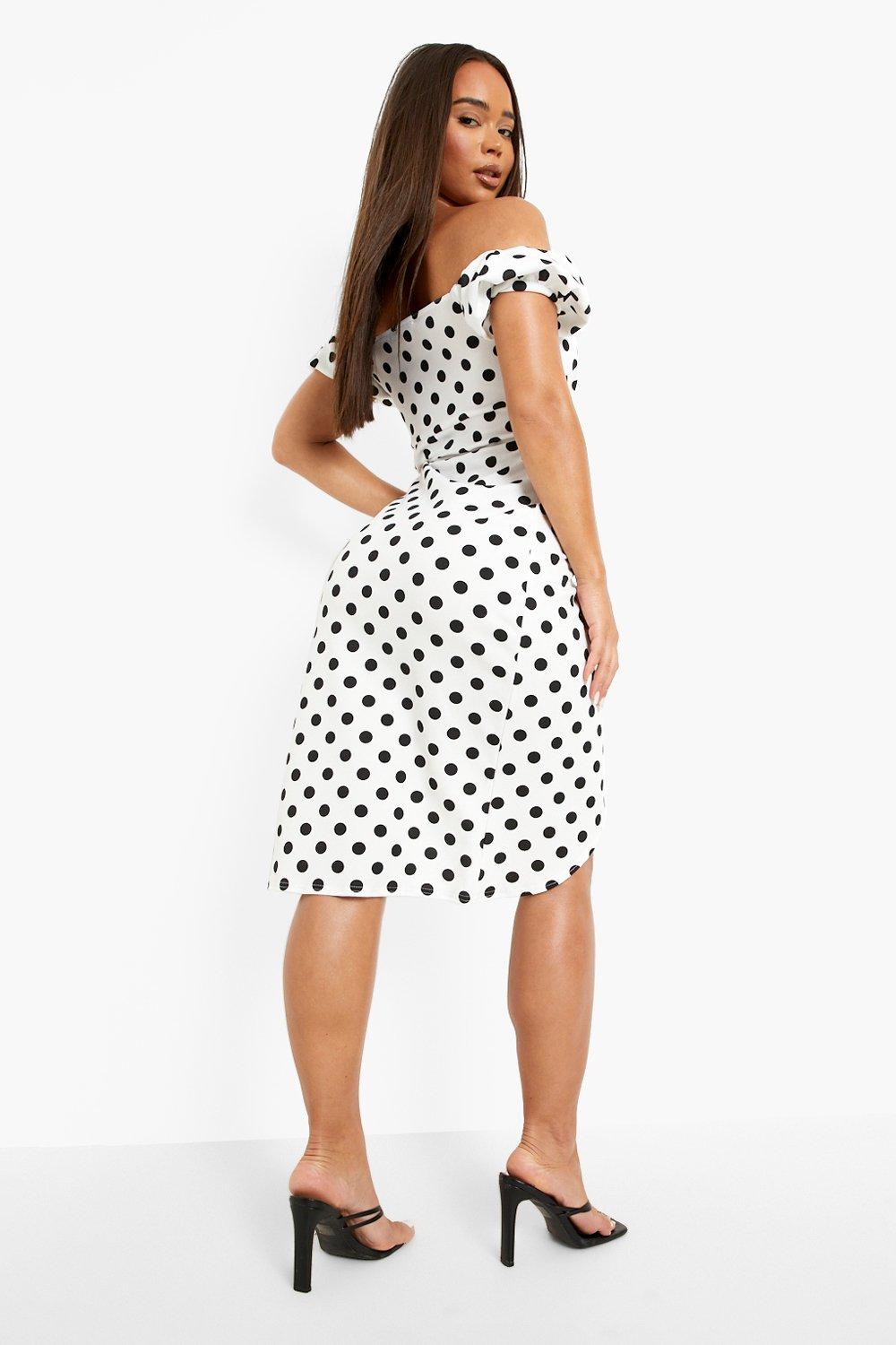 Polka Dot Bardot Plunge Midi Dress Very well made.