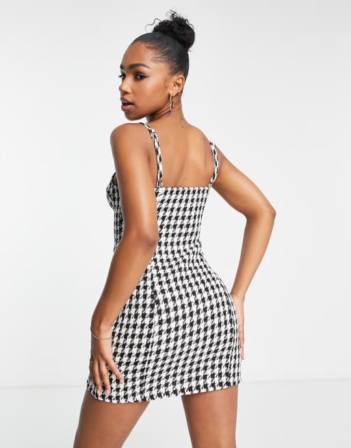 Stradivarius boucle corset mini dress in mono houndstooth print ASOS Very well made.