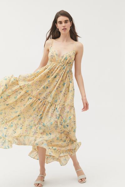 UO Sylvia Yellow Floral Prairie Midi Dress Very well made.