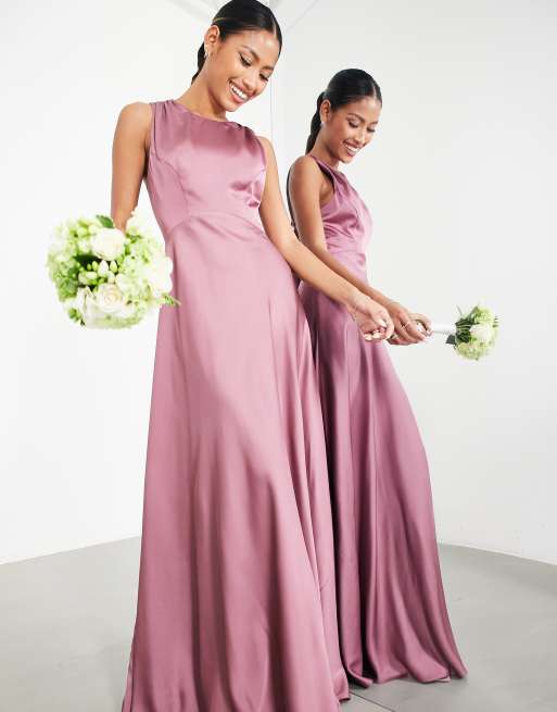 ASOS DESIGN Bridesmaid satin cowl neck maxi dress with full skirt in olive green Very well made.