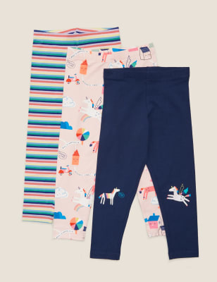 3pk Cotton Unicorn Print Leggings 2 7 Yrs M S Very well made.