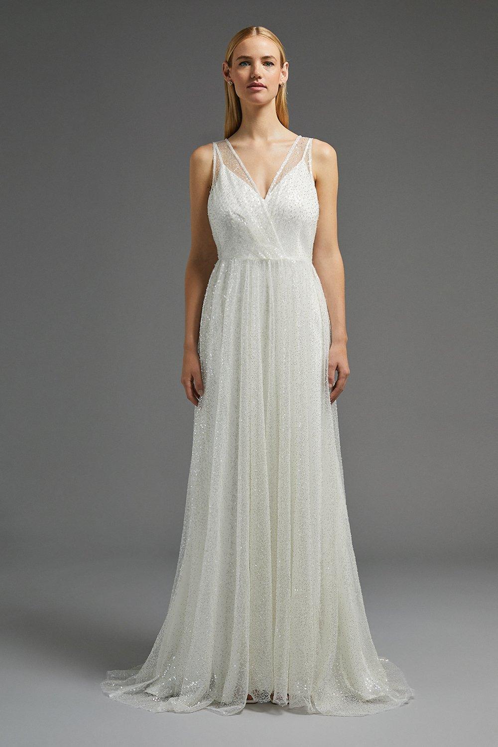 Dresses Sequin Wrap Front Overlay Dress Coast Very well made.