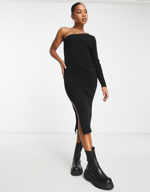 Stradivarius asymmetric knitted midi dress in black ASOS Very well made.