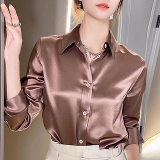 Shirts Women Solid Color Long Sleeve Blouse Office Lady Satin Silk Blouses Tops Plus Size Clothing Shirts Very well made.