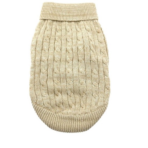 DOGGIE DESIGN Combed Cotton Cable Knit Dog Sweater Oatmeal Very well made.