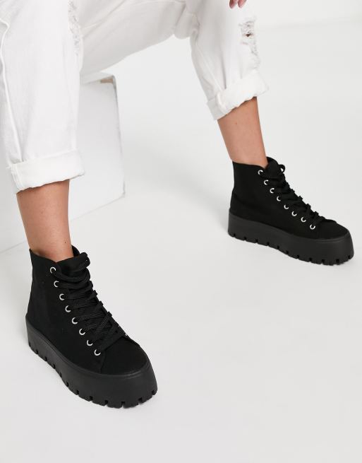 ASOS DESIGN Detra chunky high top canvas trainers in black ASOS Very well made.