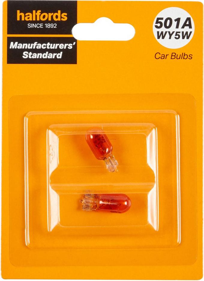 501A WY5W Car Bulb Manufacturers Standard Halfords Twin Pack Very well made.