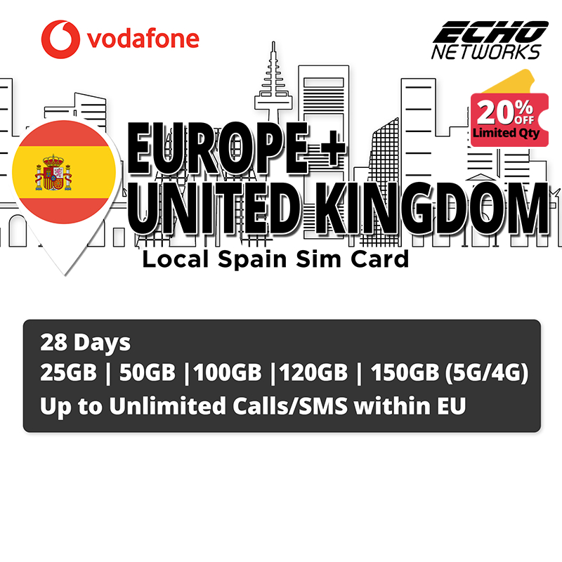 Vodafone Spain 28 Days 25GB 50GB 120GB 150GB 4G Spain Local Very well made.