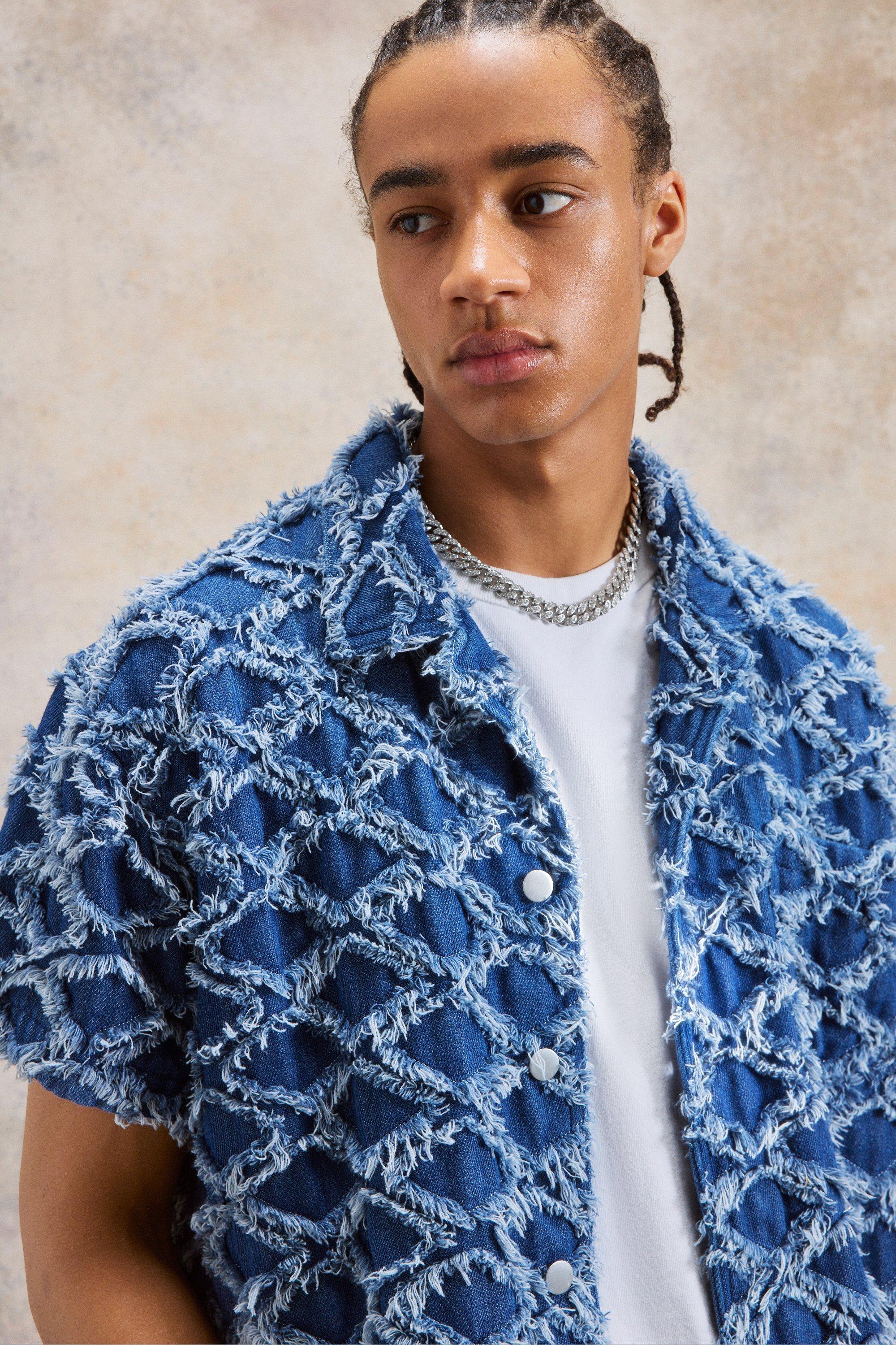 Boxy Fit Diamond Jacquard Denim Shirt boohoo Very well made.