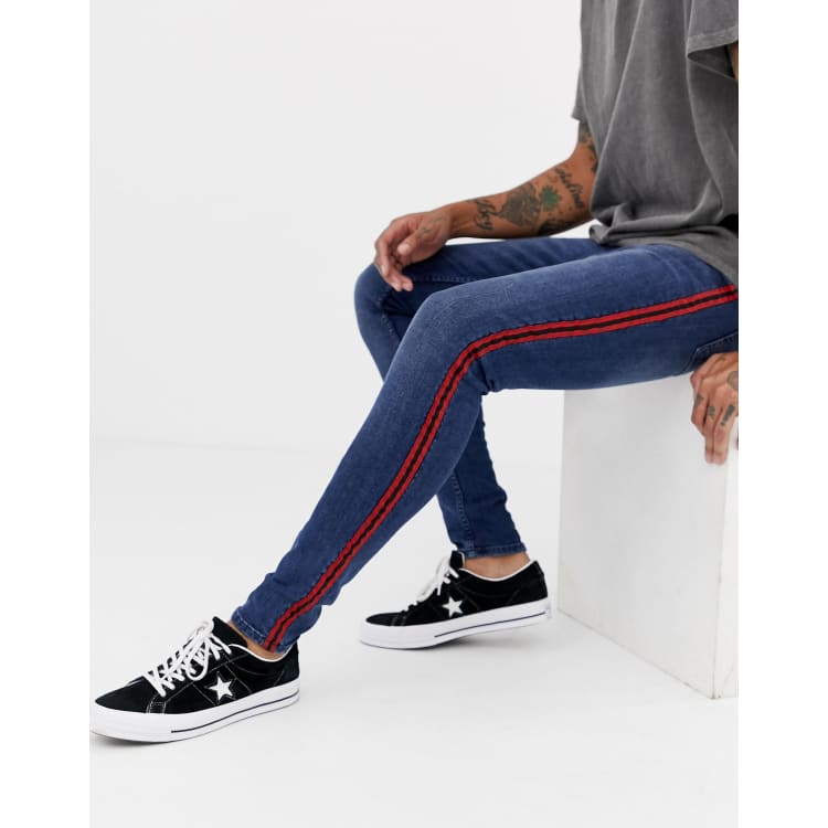 Black Side Striped Skinny Jeans A130 Streetwear Mens Jeans Very well made.