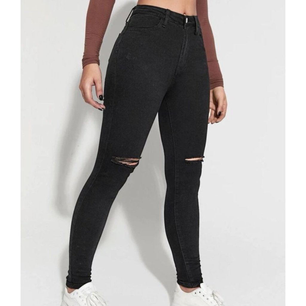 Cal a Jeans Feminina Preta Rasgada no Joelho em Promo o na Shopee Very well made.