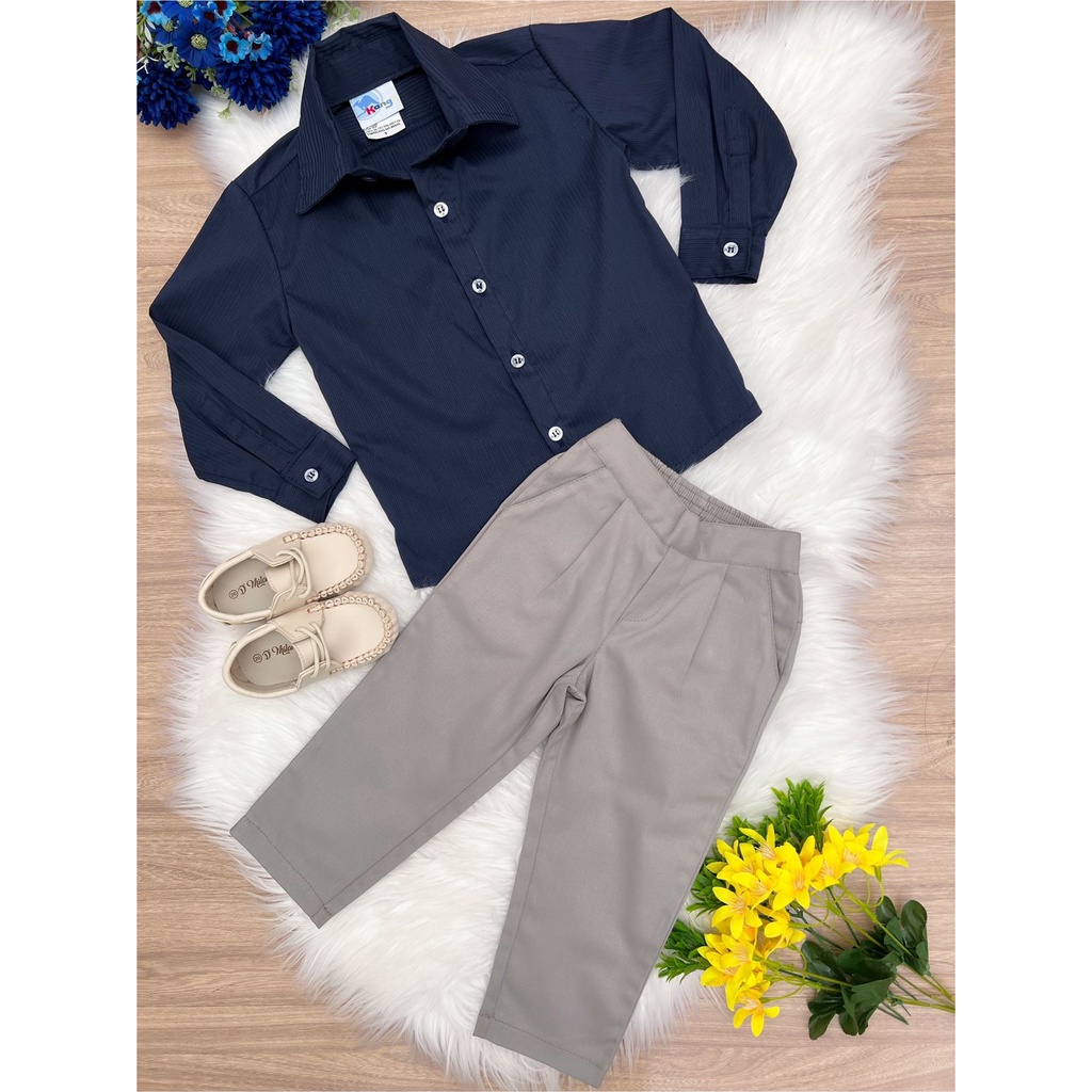 Conjunto Social Camisa Azul Marinho E Cal a Sarja Caqui Shopee Very well made.
