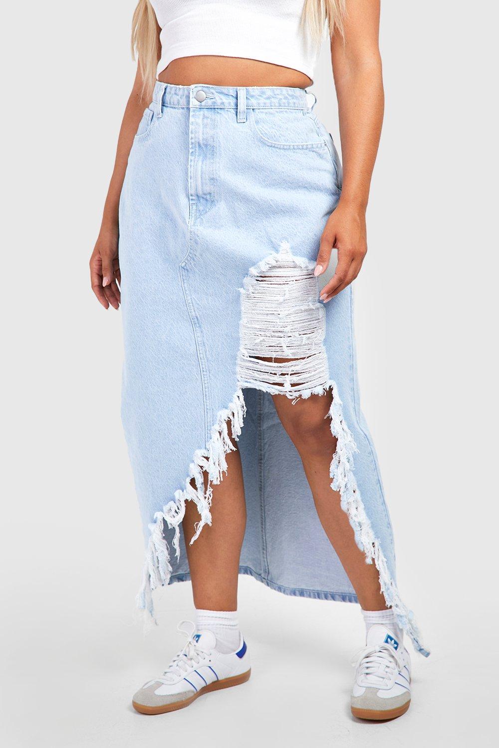 Plus Ripped Split Detail Denim Maxi Skirt boohoo Very well made.