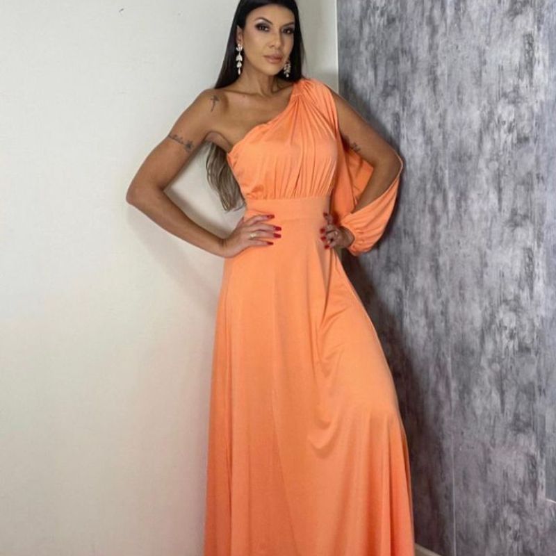 Vestido Manga Nua C Abertura Lateral Cor Salm o Coral Vestido Very well made.