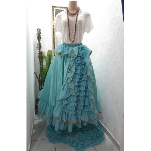 Saia Midi Gode Rodada Evang lica Sereia Com Babado na Barra Cores Very well made.
