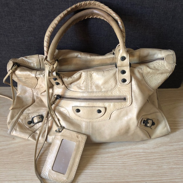 BALENCIAGA Mary Kate leather bag with embossed logo lettering Very well made.