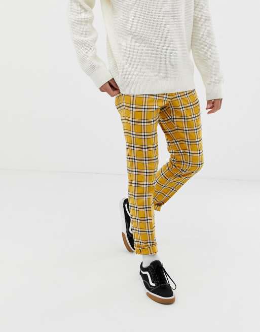 ASOS DESIGN skinny smart trouser in bright yellow check with drawcord waist Very well made.