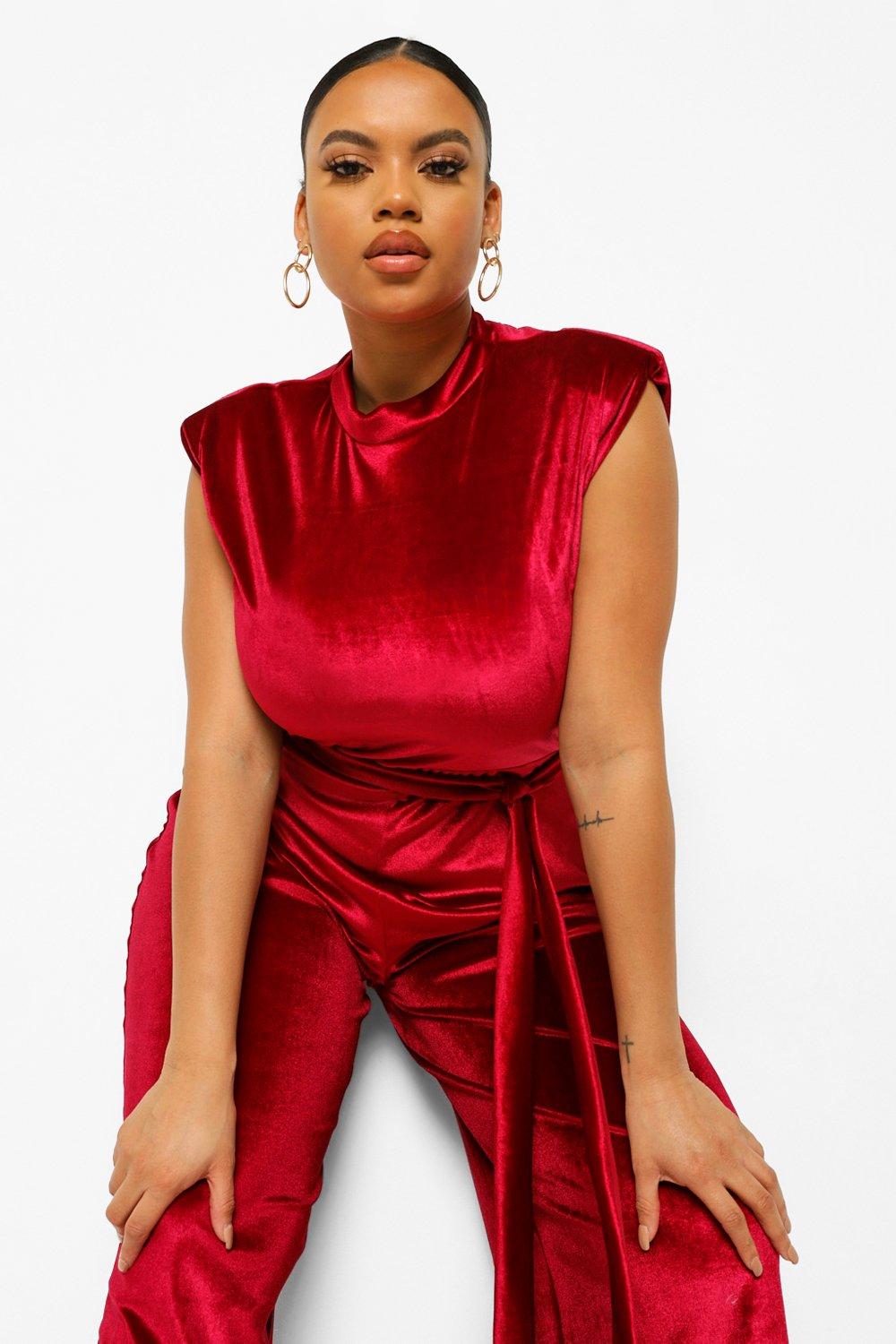 Plus Velvet Shoulder Pad Jumpsuit boohoo Very well made.
