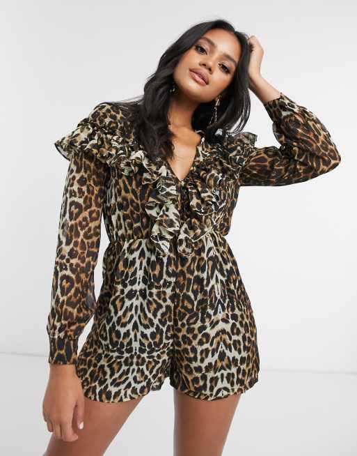 MISSGUIDED BROWN BLACK LEOPARD PRINT SHORTS WIDE DROP SLEEVE Very well made.