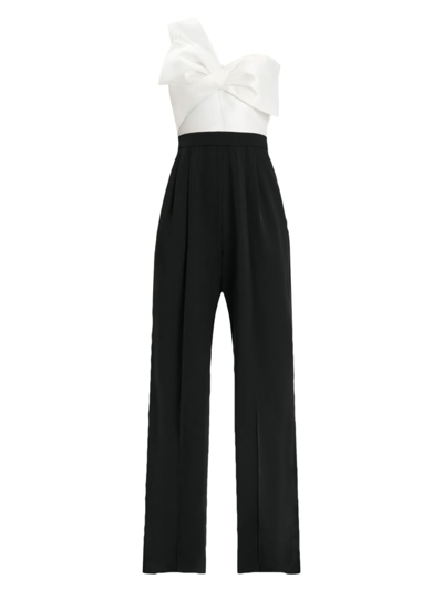 Zac Posen One shoulder Two tone Bow front Jumpsuit In Black White Very well made.