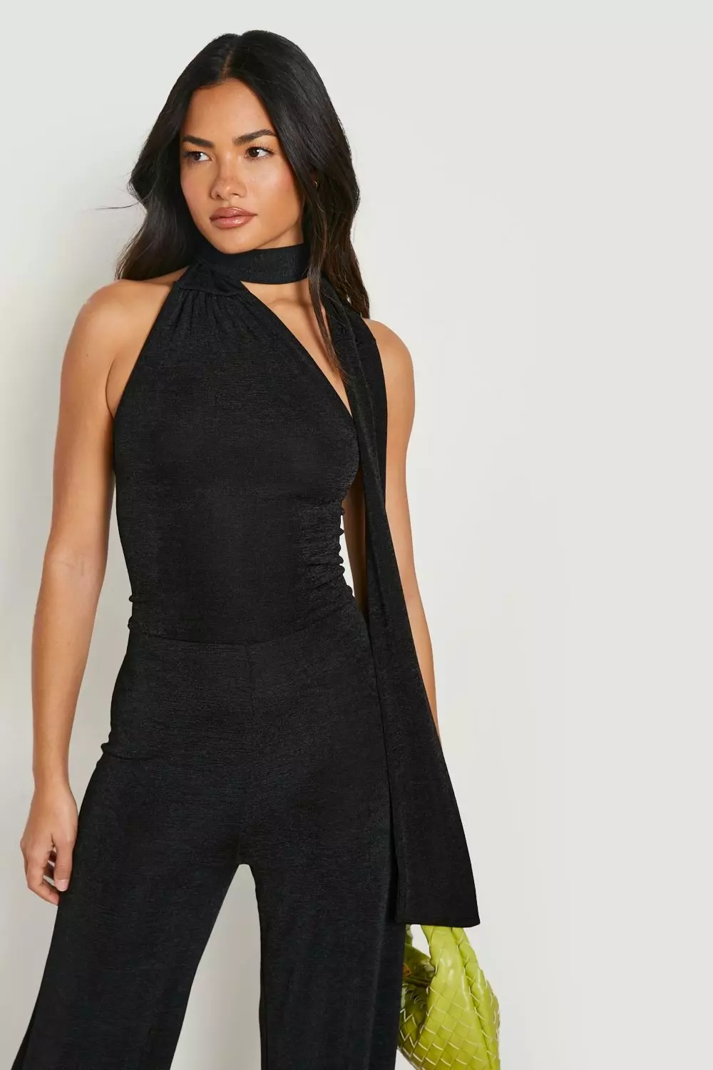 Textured Slinky Tie Neck Wide Leg Jumpsuit Very well made.