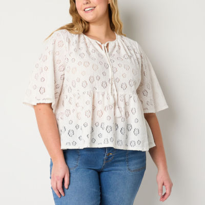 Frye and Co. Plus Womens Split Tie Neck Elbow Sleeve Blouse Very well made.