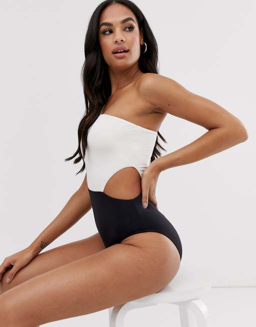 Seafolly one shoulder swimsuit in black and white color block Very well made.