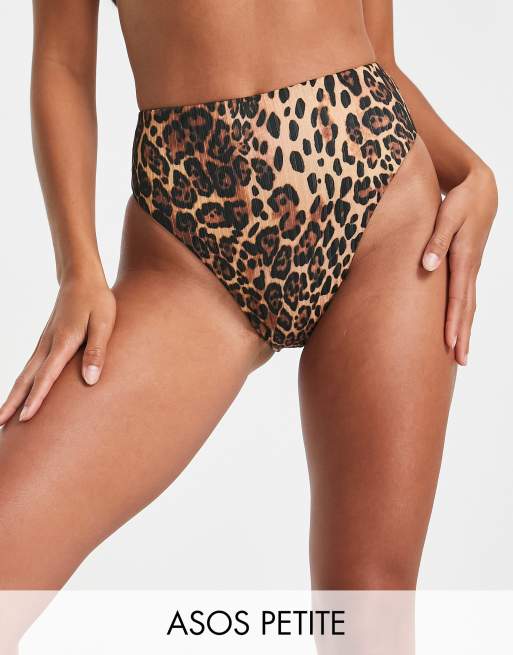 ASOS DESIGN Petite mix and match high leg high waist bikini bottom in leopard print Very well made.